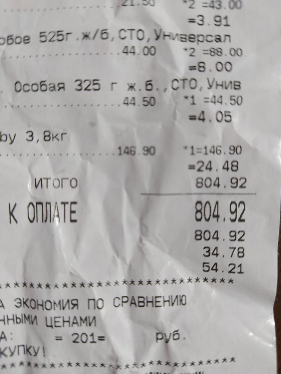 Супербюжетные покупки. Чек на общую сумму 804.92 руб.