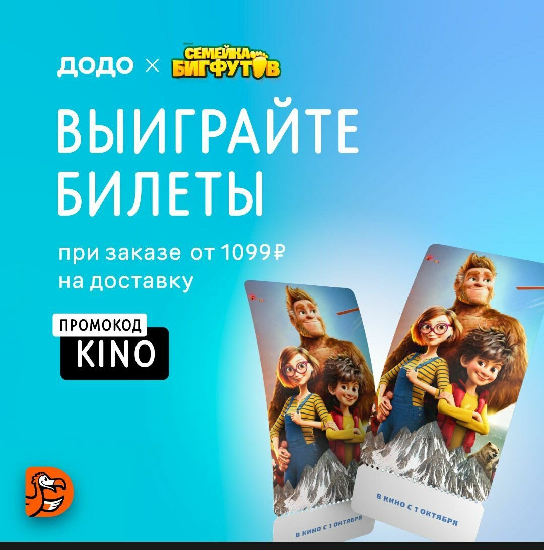 При заказе на сайте Додо Пицца от 1099 рублей в промокоды введите слово: KINO
