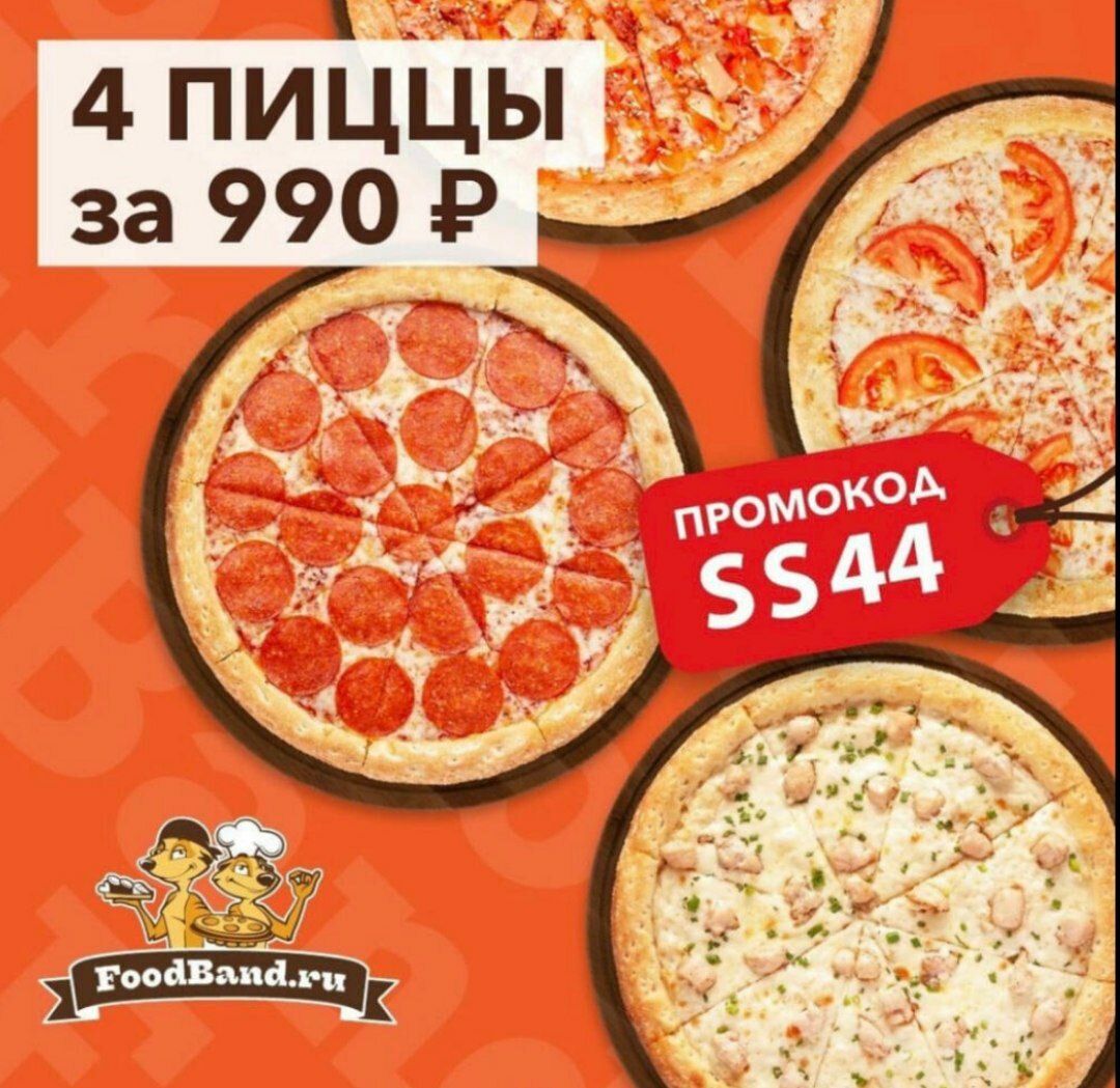 Забираем 4 пиццы за 990р в FoodBand