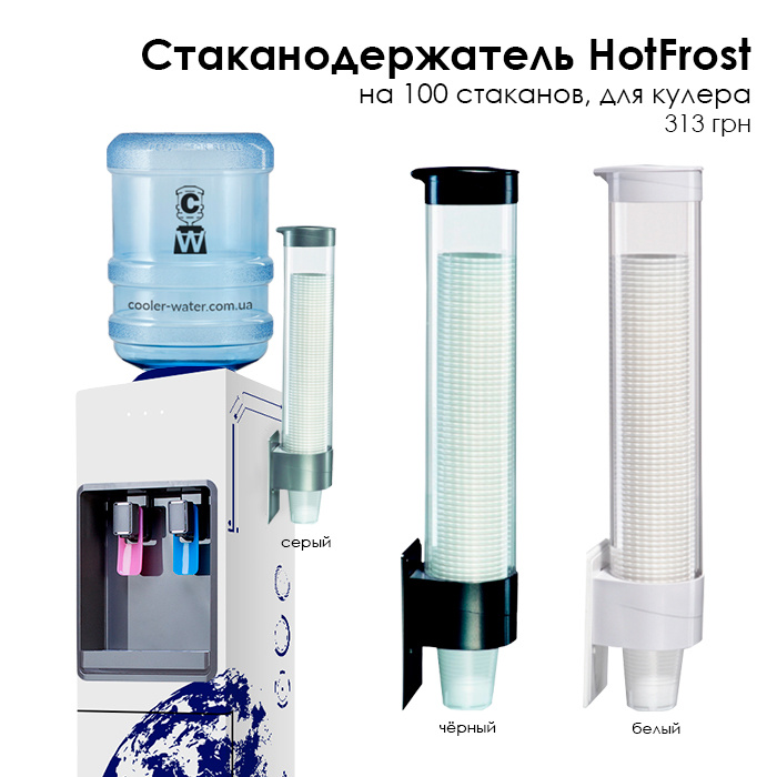 Стаканодержатель для кулера – это аксессуар, который обеспечивает удобное хранение и выдачу одноразовых стаканчиков из пластика или бумаги, а также привносит массу удобства к ежедневному пользованию кулером для воды. Стаканодержатель HotFrost крепится к кулеру при помощи магнитов или саморезов, как правило у кулеров уже есть готовые две дырочки с завода для крепления подстаканника на