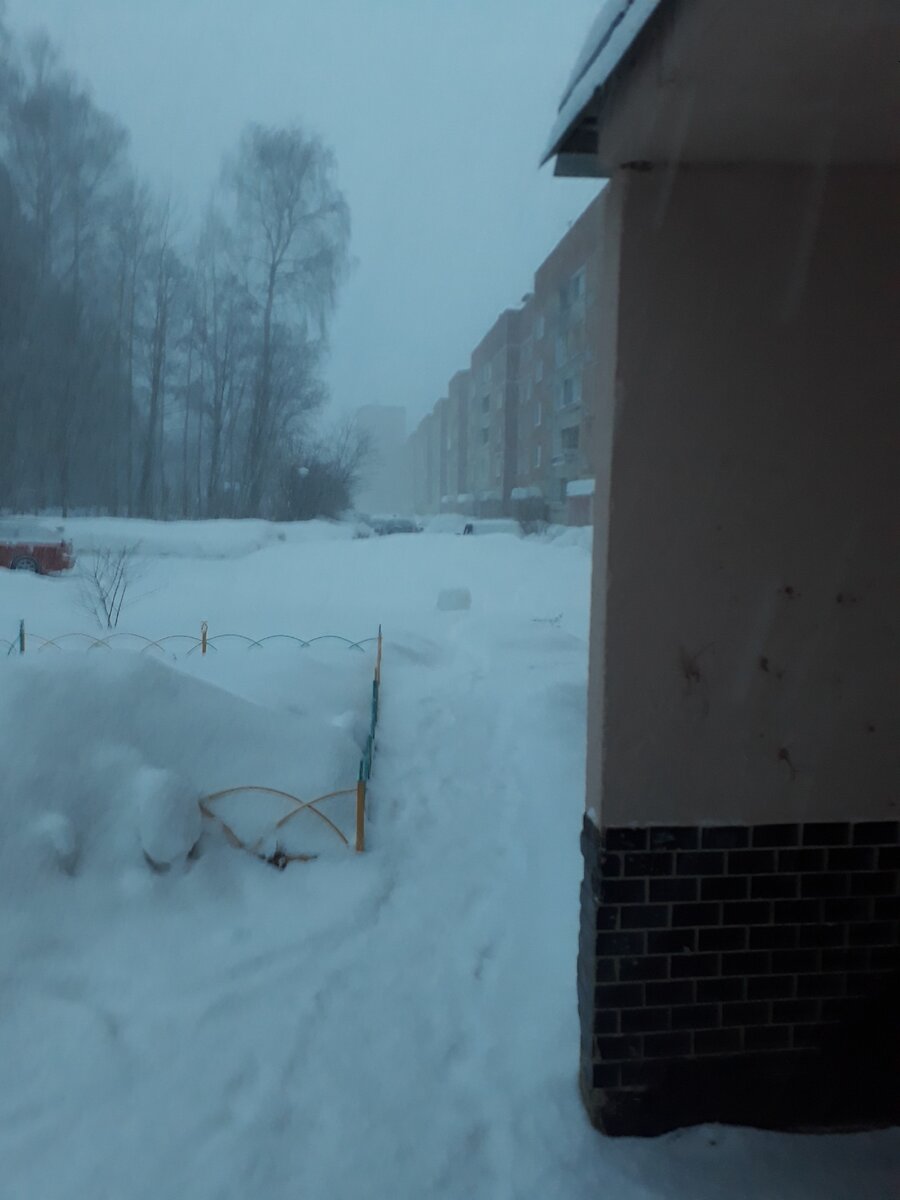 Фото у подъезда в марте.