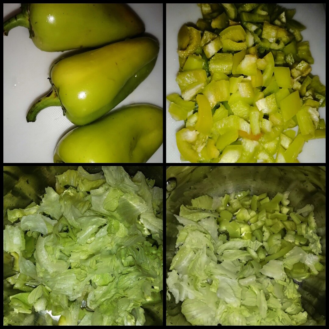 3. Мелко режем перец и рвём мелко салат.