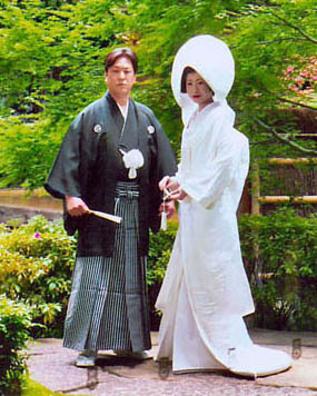 В старой Японии у девушек воспитывали покорность, послушание, смирение. Родители могли выдать девушку замуж, продать в услужение. Браки заключались по сговору родителей. Через брачного посредника - накодо, устраивали смотрины. Затем происходил обмен подарками, после чего жених дарит невесте свадебное кимоно или деньги на его покупку. Родители невесты подносят жениху рыбу нескольких сортов, морскую траву и другие продукты для свадебного стола. После обмена подарками ни одна из сторон уже не имеет права уклониться от брака. Затем по древнекитайскому циклическому календарю назначается счастливый день для заключения брачной церемонии. В день свадьбы невеста одевает траурное белое кимоно в знак того, что она отныне умирает для старой семьи. Вечером ее отправляют в дом жениха. После проводов невесты в доме ее родителей совершаются очистительные церемонии, как после выноса покойника - метут и моют полы, зажигают у ворот костер.