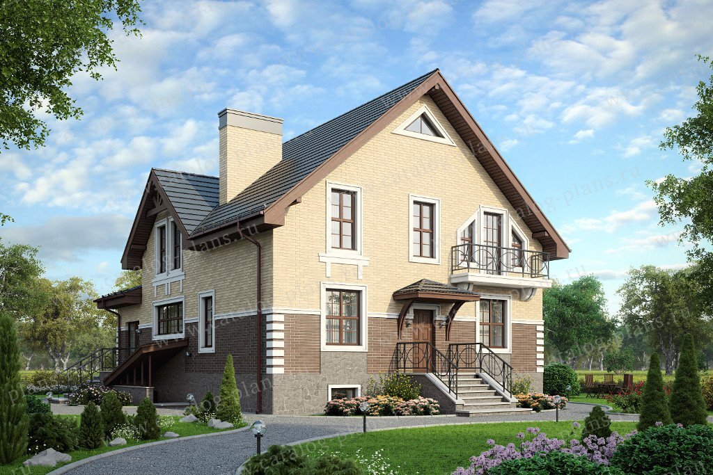 Обратите внимание на стильную наружную отделку штукатуркой и декоративными элементами, она прекрасно сочетается с мансардной крышей, покрытой металлочерепицей.