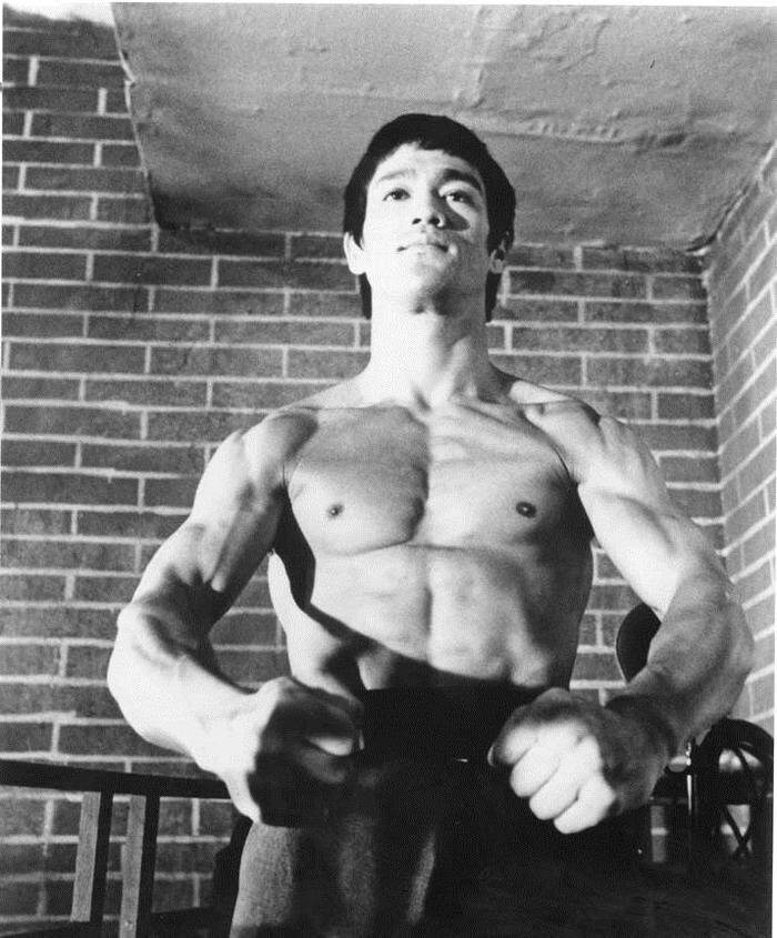 Знаменитый Брюс Ли, о котором споры ведутся уже не одно поколение кто то говорит что он просто актёр, кто то говорит что он легендарный мастер боевых искусств, давайте разберёмся по порядку. Физическая подготовка. Глядя на это фото мы видим довольно таки проработаный рельев и если спросить у человека который впервые о нем слышит спортсмен ли на фото? Скорее всего ответ будет положительным. Но это фото было сделано на пике его популярности, давайте посмотрим на него когда он только приехал в Америку. Делая выводы из этой фотографии можно сказать одно, обычный парень, ничем не отличается от нас с вами, вряд ли даже спортом когда либо занимался. После приезда в Америку Брюс понял что если быть просто актёром, таким же как и все, это никак его не будет выделять из общей массы, и он решил для себя что нужно действительно быть оригинальным. И выбрал стезю боевых искусств. Ли был на удивление весьма целеустоемленным, просто невероятное стремление к своей поставленной цели, и за кротчай