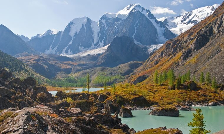 Российская часть горного массива расположена в Алтайском крае и республике Алтай. Горный хребет разделят между собой четыре страны: Россию, Монголию, Китай и Казахстан. Наивысшая точка – гора Белуха – возвышается на 4,5 км над уровнем моря. Алтайские горы – одно из самых красивых мест России. Они являются частью Всемирного наследия ЮНЕСКО, помимо них в состав наследия входят биосферные заповедники Алтайский и Катунский, а также плоскогорье Укок. Всё это находится на территории России.