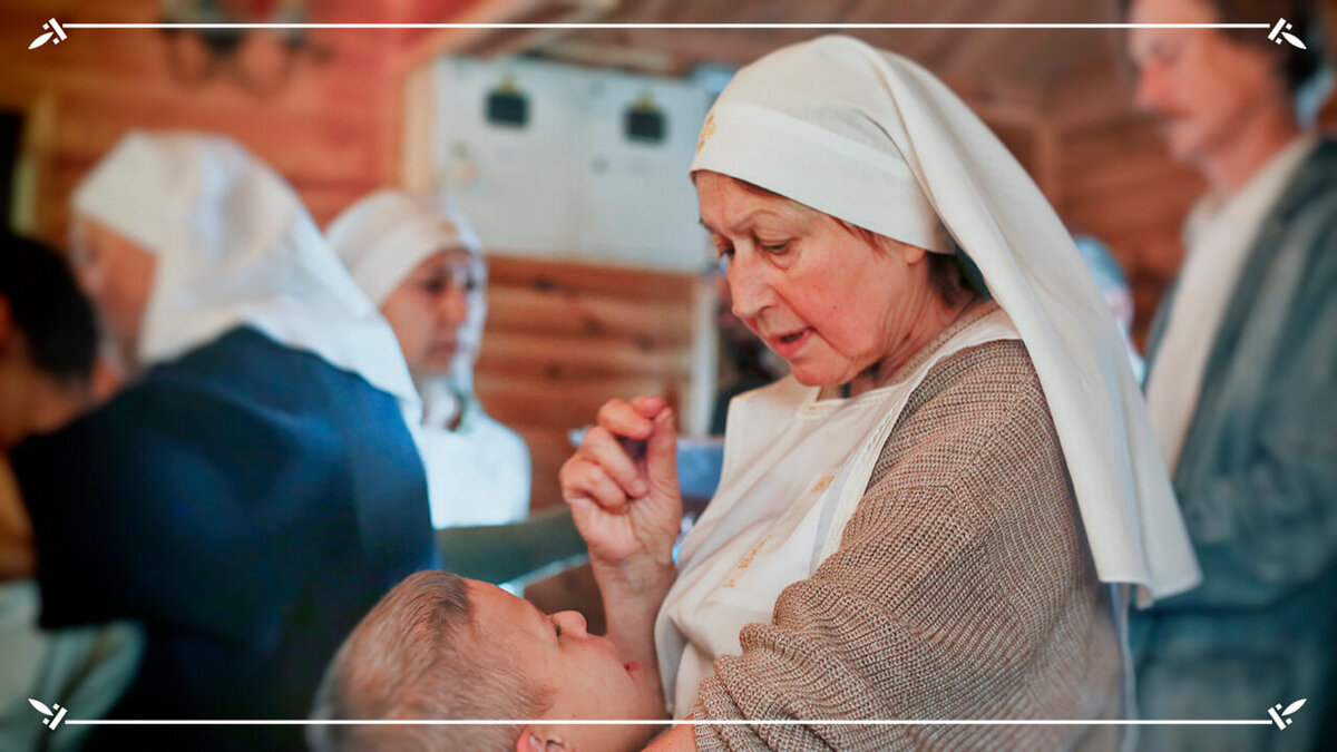 А пищу… Мы молимся, а потом крестим — верх, низ, лево, право.