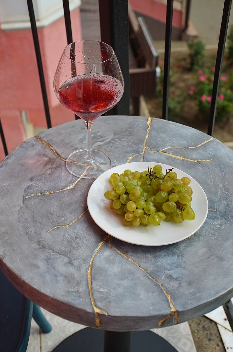 Мне в голову закралась идея создать бетонный столик для балкона! Не из настоящего бетона, как это делают мастера, заливая бетонную смесь в форму, а из декоративного. Еще Мне хотелось симитировать на нем золотые трещины, появившиеся от времени, как на натуральных камнях.