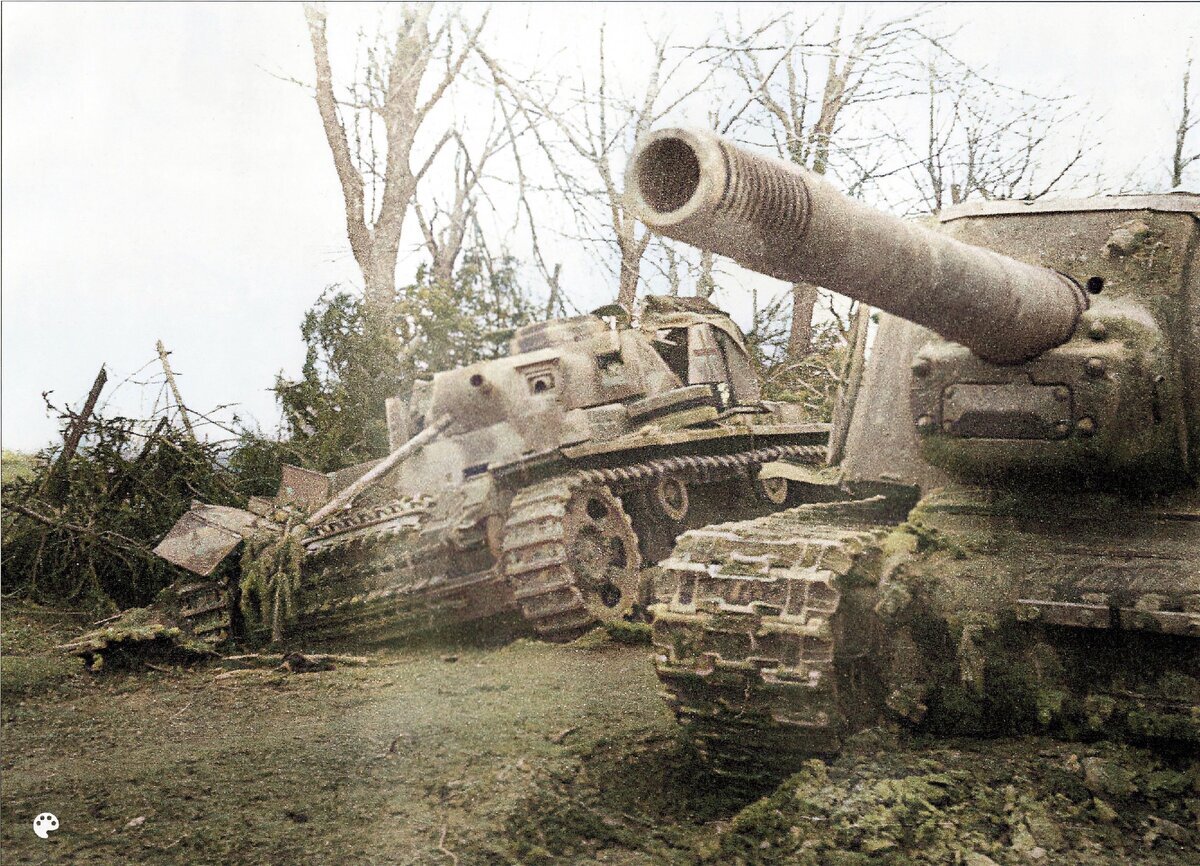 На Восточном фронте были регулярные проблемы с противотанковыми средствами как для Советского Союза, так и для Третьего Рейха. Возникали они по различным причинам, скажем немцам не хватало противотанковых возможностей ее орудий в первый год войны, а в Красной армии банально не хватало дивизионных пушек, иногда дивизии вступали в бой вообще их не имея, используя скажем в боях со 2-й танковой армией Гудериана на Брянском фронте так сражались наши стрелковые дивизии. Еще раз противотанковый кризис в Красной армии возник с начала 43-го года, ибо дело в том что не только появились известные немецкие танки “Пантера” и “Тигры”, но и подняли уровень брони основного немецкого танка Т-4 до 80-мм. Оказалось, что теперь дивизионные 76-мм орудия не справлялись с этой броней, поэтому шла всесторонняя модернизация, и даже вспомнили про 57-мм противотанковую пушку, которую перестали делать в 41-ом году. Именно на этом фоне и стала легендарной советская САУ СУ/ИСУ-152, которую начали использовать в