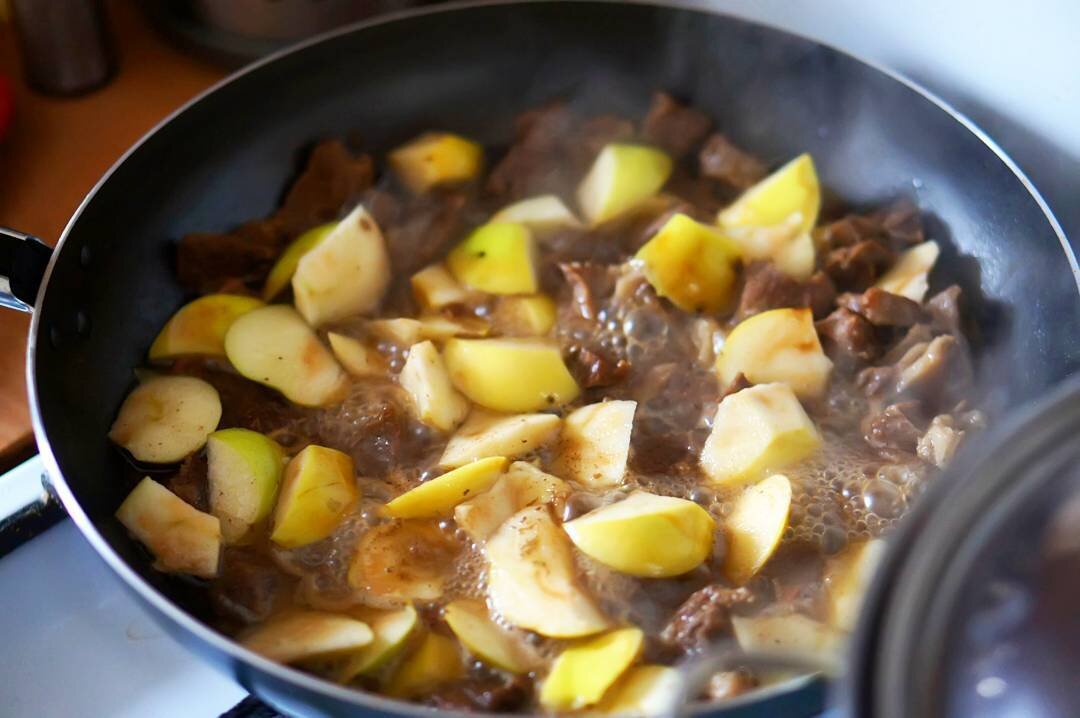 Мясо по-строгановски (бефстроганов) в яблочно-соевом соусе