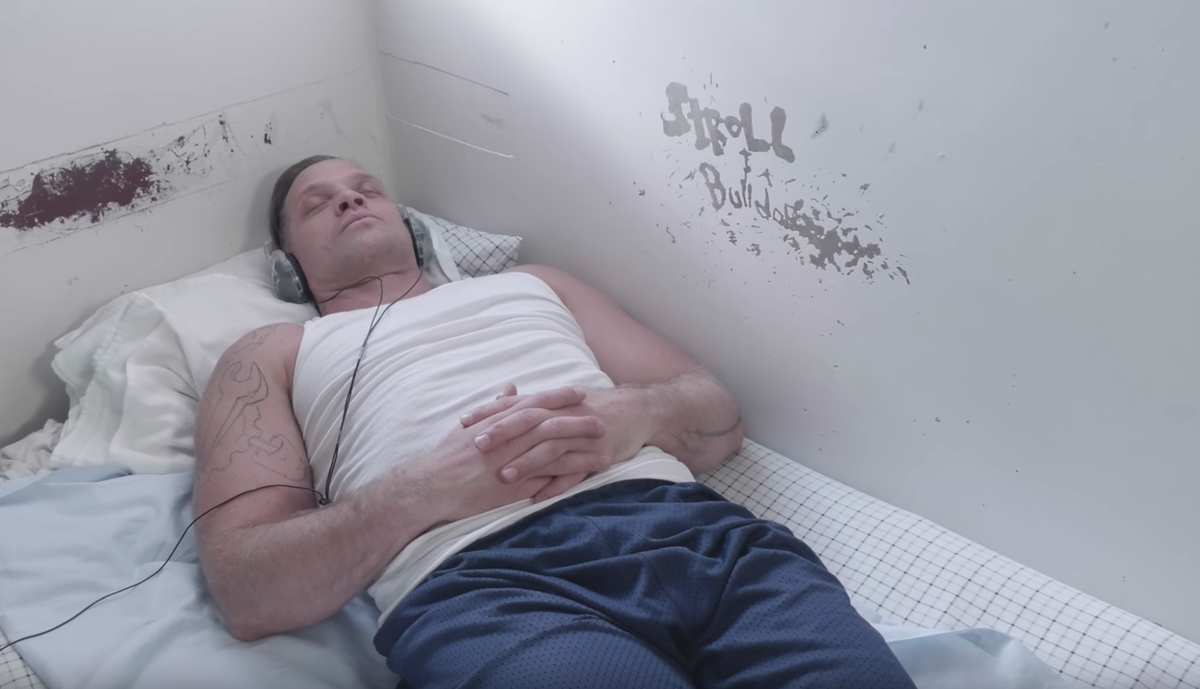 Есть даже возможность заниматься спортом: поднимает штангу, и его мышцы становятся настолько большими, что судья шутил о заключённом-качке во время слушаний.
