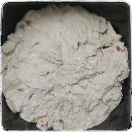 Итак, погнали. Яйца взбиваем до заметного посветления (в этом рецепте я не вижу смысла отдельно взбивать белки), соединяем с творогом, добавляем муку, сахар, разрыхлитель, ванилин и тщательно перемешиваем. Яблоки избавляем от сердцевинки и нарезаем как нравится, у меня дольками, но можно кружочками, кубиками - на ваше усмотрение. Соединяем тесто с яблоками, перемешиваем на совесть.