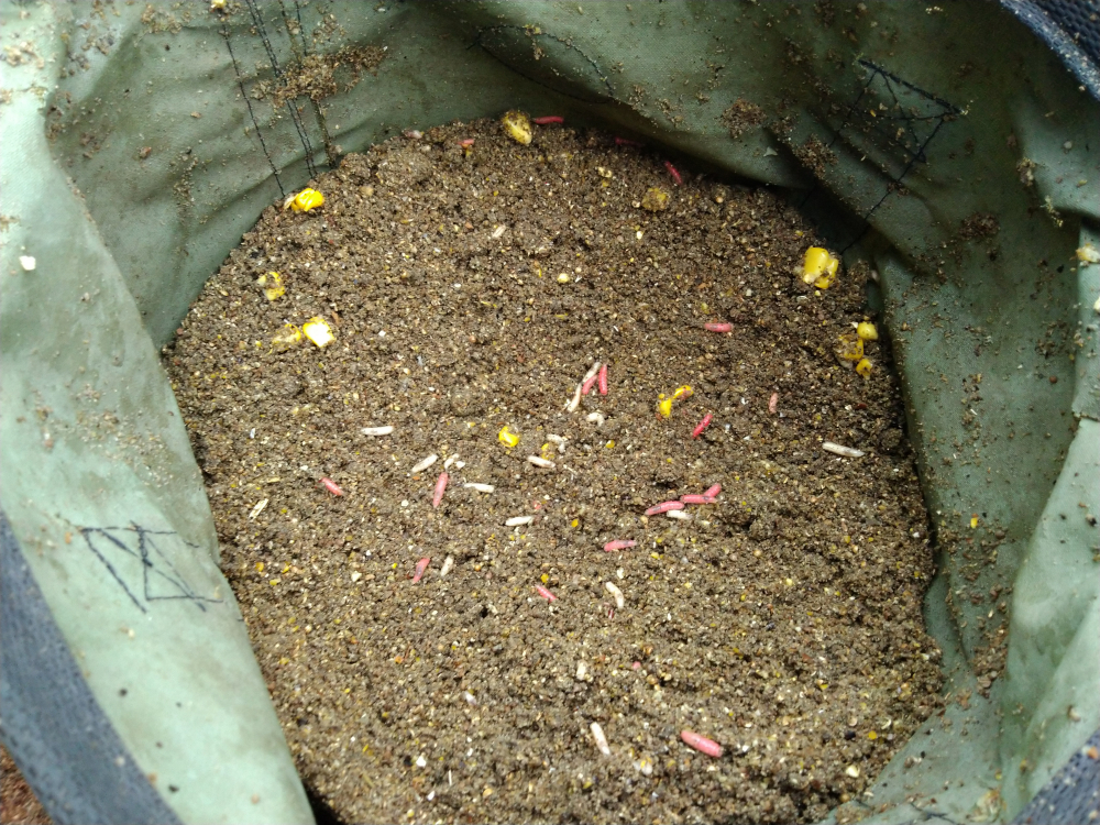 Сетчатое тело кормушки до упора утрамбовано темной, сладко пахнущей смесью вперемешку с разноцветными телами извивающихся опарышей.