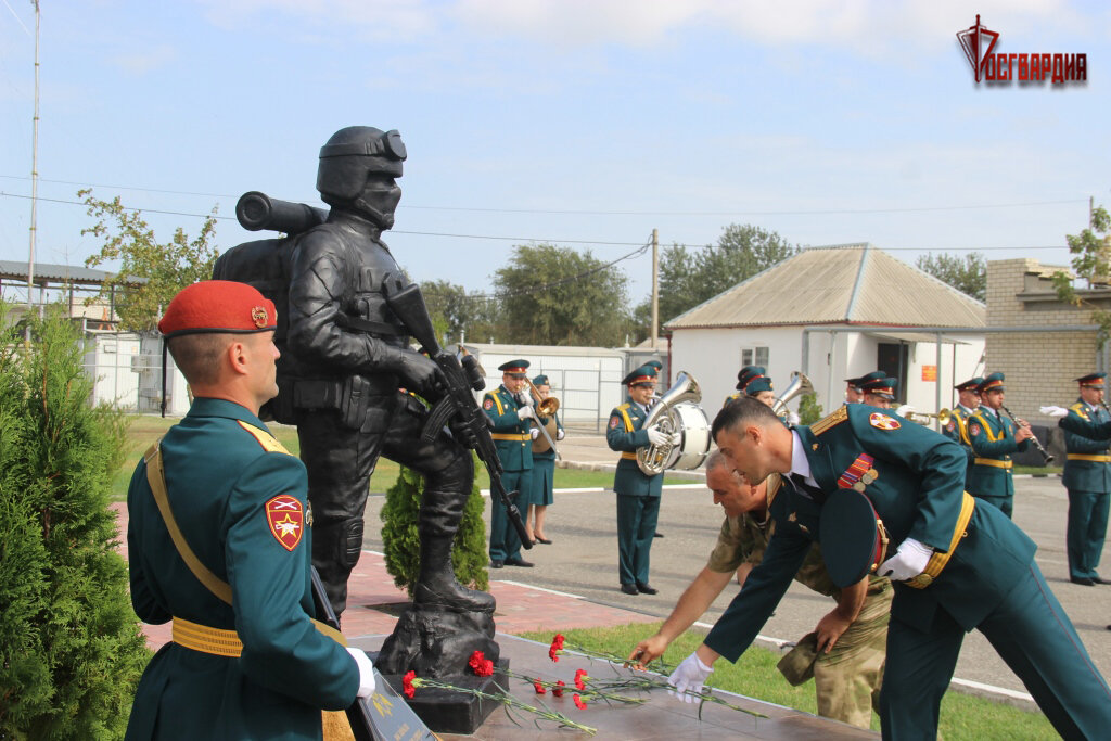 Поздравить ветеранов и военнослужащих с юбилеем отряда прибыли представители Северо-Кавказского округа Росгвардии, Объединенной группировки войск (сил) на Северном Кавказе, а также члены семей росгвардейцев. Почетное право торжественного открытия памятника было предоставлено представителю Северо-Кавказского округа Росгвардии полковнику Роману Трубину и командиру отдельной бригады оперативного назначения Северо-Кавказского округа Росгвардии полковнику Дмитрию Чистякову. Участники митинга почтили память погибших минутой молчания и возложили цветы к монументу, который был создан по инициативе руководства, личного состава, а также Совета ветеранов воинской части.