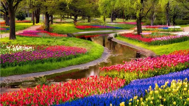 Парк Кейкенхоф расположился в Лиссе, Нидерланды. Городок находится между Амстердамом и Гаагой и славится по всему миру своими великолепными тюльпанами. Второе название парка «Сад Европы». Здесь растут более 4 миллионов тюльпанов всевозможных сортов и расцветок.