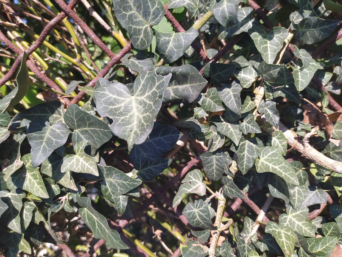 Плющ обыкновенный - вечнозелёный вьющийся кустарник рода Плющ семейства Аралиевые . У плюща ветвящиеся стелющиеся стебли и множество воздушных корней , которыми растение цепляется за любые опоры .