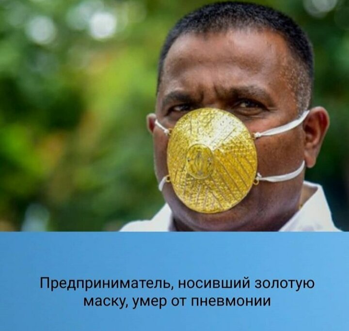 cПредприниматель из Индии, заказавший себе маску из золота, скончался, передает zakon.kz. Как сообщили иностранные СМИ, Шанкар Кураде из индийской провинции Пимпри-Чинчвад заразился коронавирусом и умер от обширной пневмонии. В июле в иноСМИ вышли новости о том, что 49-летний бизнесмен, привыкший носить на себе около килограмма золота каждый день, для защиты от коронавируса заказал маску из золота, весом 60 г. На ее изготовление ушло 8 дней. Это тонкая маска с крошечными порами, которые позволяют мне дышать. Я не уверен, насколько эффективно она будет защищать меня от коронавируса, но я принимаю и другие меры предосторожности, – говорил Курхаде. Обошлась такая маска около 4 тыс. долларов США.