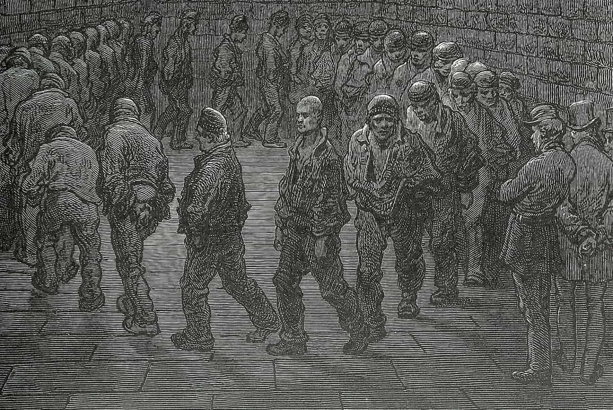 Это учреждение, где содержится четыреста не состоящих в браке человек, которые должны подниматься каждое утро в 5 часов; в пять пятьдесят они должны закончить свой toilette, заправить постель и выпить кофе; в 6 часов начиналась обязательная работа, заканчивавшаяся вечером в 8 часов 15 минут, с обеденным перерывом на час; в 8 часов 15 минут — ужин и совместная молитва; отдых в спальных комнатах начинается ровно в 9 часов.