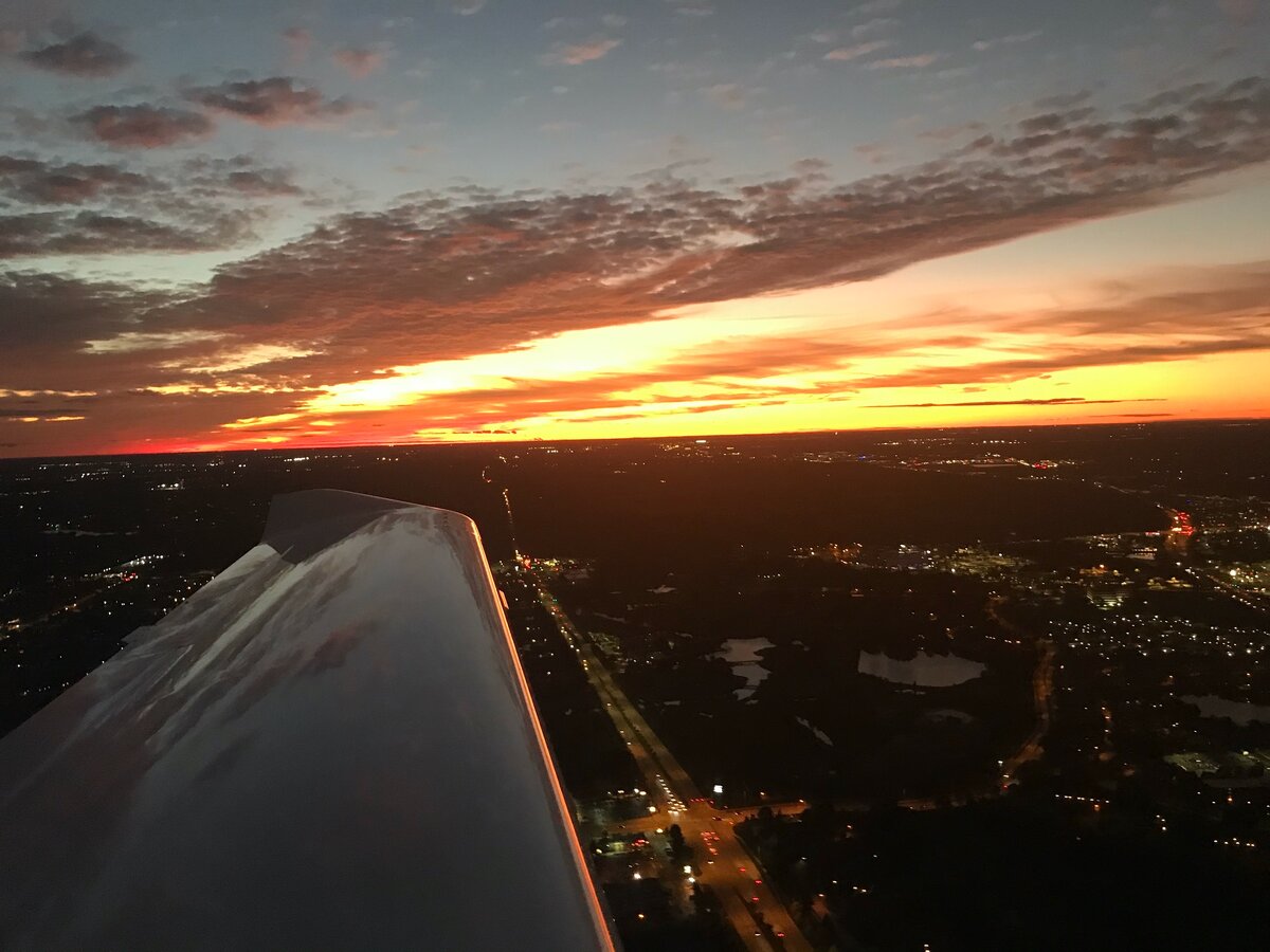 Вот этот момент является кульминацией моего обучения. Ты выныриваешь из облаков, из зги и тут перед тобой в ночи яркие огонечки полосы. Ну как перед тобой. Метрах в 30-50 справа… По вертикали осталось 25 метров… Посадка в метеорологических условиях полной Ж. Кручу баранку, добавляю газу, с креном захожу на посадку и слегка жестковато плюхаюсь на ВПП.