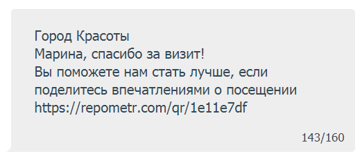 Важно до минимума сократить путь клиента к карточке компании. Не заставляйте вас искать: в смс и qr-кодах должна быть прямая ссылка на опросник. Отправлять рассылки удобно с помощью сервисов работы с отзывами: загружаете базу контактов, персонализируете сообщение, чтобы оно не потерялось в спаме, и отправляете.