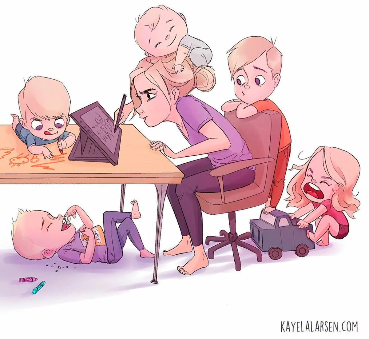 Любовь к изобразительному творчеству. появилась у Кейлы еще в детстве, при просмотре Диснеевских мультфильмов. Сейчас же это не просто увлечение, а способ скинуть стресс, а его как сами понимаете достаточно, ведь она мама сразу пятерых детей.