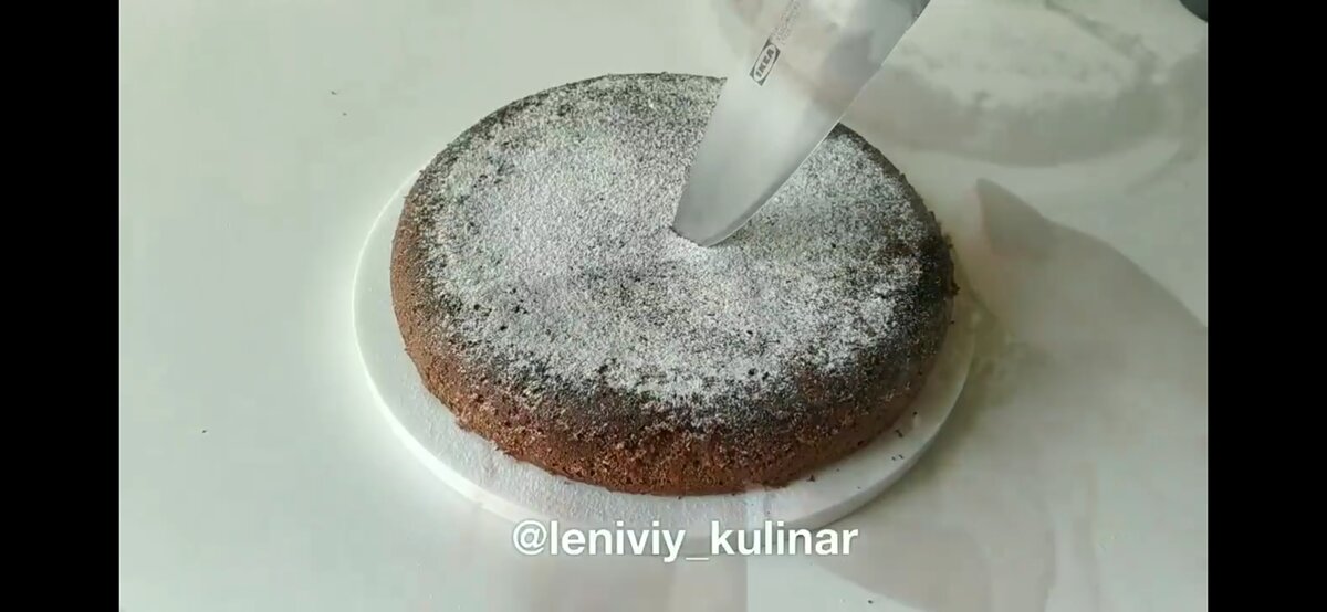 Все! Больше делать ничего не нужно, только ждать. Тесто очень хорошо поднимется. Из сковороды достается очень легко. У такого бисквита получается довольно плотная корочка и нежнейшая внутренняя часть, пористое и мягкое тесто.