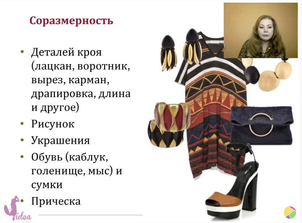 На самом деле простая фраза: “У меня все крупное и поэтому мне нужны крупные детали”, сразу же решает все вопросы с формами и размерностью. Зная, что нам необходимо все крупное, мы уже не станем брать туфельки с острыми носками на тоненьком каблучке, обойдем стороной тоненькие колечки, исключим из образа маленькие броши и подвески, а также перестанем покупать микро-сумки.