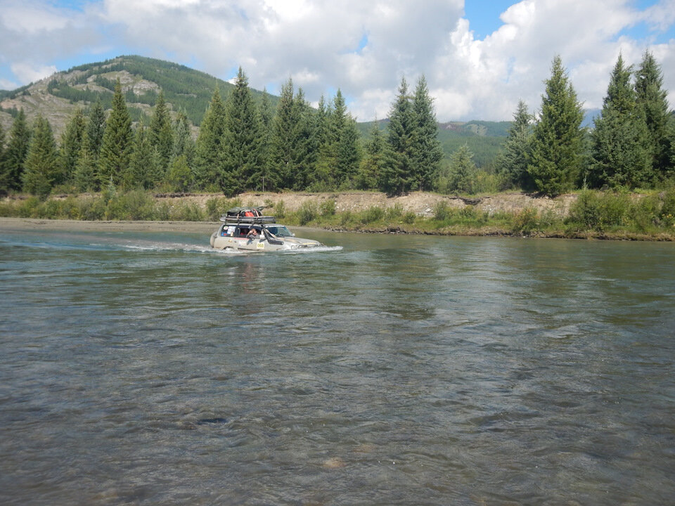 Короче мы поплыли. Была выбрана самая глубокая траектория. Однако салон остался сухой, чего не скажешь о штанах))) Далее перетянули Сурфа без шноркеля, и все остальные благополучно перебрались.Начался категорийный участок, дороги дальше нет!