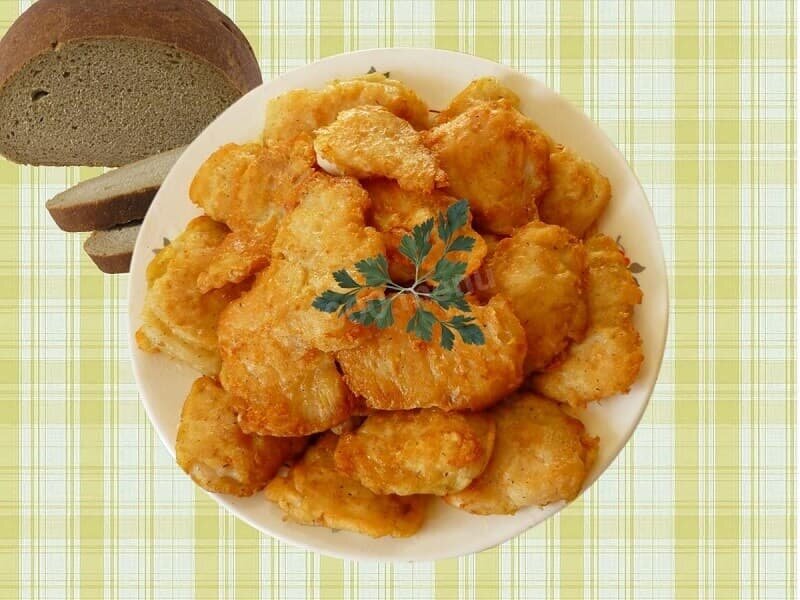 На 1,5 кг филе рыбы: молоко 400 г, яйцо 6 шт, мука, растительное масло, соль – по вкусу
