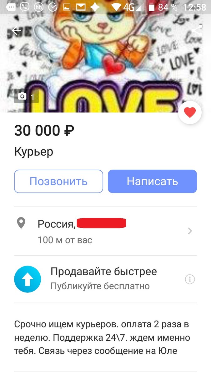 В поисках работы, наткнулся на объявление на "Юле". Не то чтобы стремлюсь, стать курьером, на всякий случай пометил в "избранное", но не откликнулся.