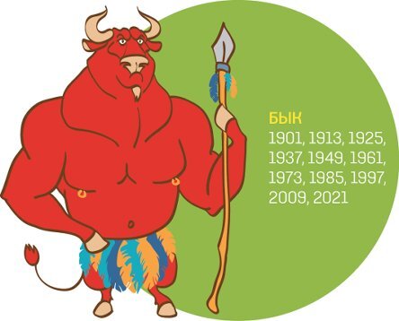 Годы Быка: 1913, 1925, 1937, 1949, 1961, 1973, 1985, 1997, 2009, 2021, 2033 ...