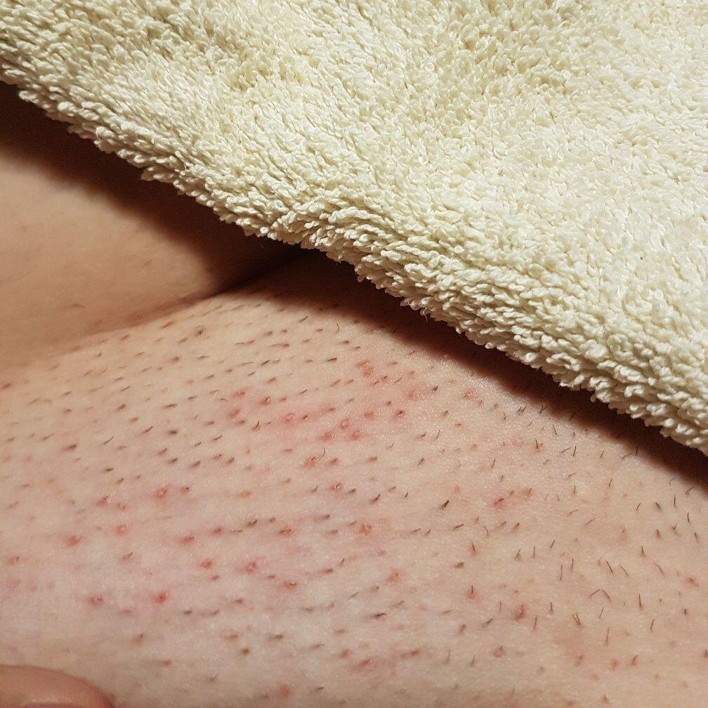 Зуд и покраснение на бикини во время прорастания волос, обычно проявляется на 14-17 день после депиляции. Называется "эффект занозы" или псевдофолликулит. Проходит примерно через 3-4 дня. Зуд на бикини может быть из-за повреждения липидного барьера (черезмерный уход, ежедневки, интимное мыло и пр.), индивидуальной особенности прорастания волос, фолликулярного гиперкератоза, обломали волосы (мастер накосячил). Самое главное: не чесать и дать коже восстановиться (исключаем мочалки, мыло, скрабы, ежедневки, синтетическое белье) А зуд помогут снять соляные компрессы, средства с оксидом цинка, глиняные маски. Любите себя, выбирайте хороших мастеров.