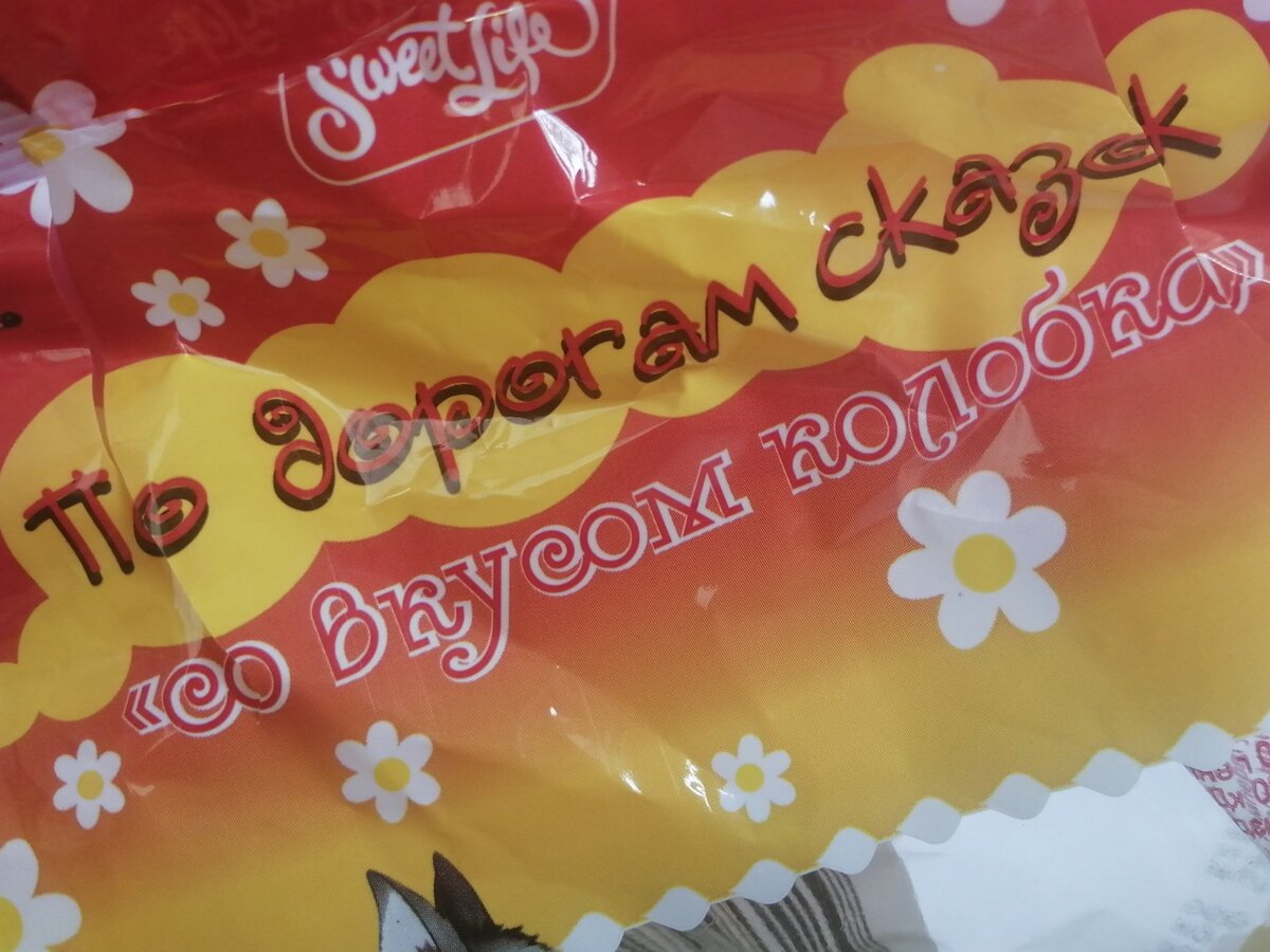Единственное, что связывает эти конфеты с колобком, помимо заявления о вкусе, это иллюстрация на упаковке: