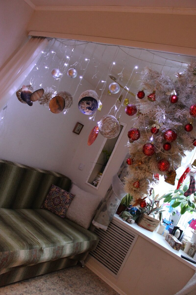 2. Елка - естественно вверх ногами)))) тут же невесомость))) и парад планет вокруг - обязательно.
