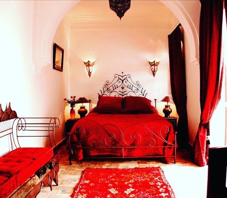 Красный цвет — сложный, он сочетается не со всеми оттенками, в любом интерьере перетягивает внимание на себя. Особенно сильно это проявляется в спальнях, которые обычно замкнутые пространства, а в типичных российских квартирах — ещё и компактные. Давайте посмотрим на интересные варианты, в которых красный и его оттенки грамотно обыграны и поданы. На фото выше спальня в японском стиле с элементами китча. Обратите внимание, как хорошо подобраны цвета. Здесь мы видим роскошную красную кровать с велюровой обивкой. В качестве акцента ещё и ковёр на полу. Снова китч и шикарное кожаное изголовье. Здесь пошли самым простым путём. Акцентная стена и банкетка, всё остальное более сдержанное и стильное. Отлично вышло. Грань между вульгарностью и эклектикой очень тонка порой. И антипример: розы выглядят как раз пошло и избито, а в остальном очень симпатично. Мы можем изготовить кровать любого цвета, даже красного, а также предложить комоды и банкетки, чтобы вваша спальня стала по-настоящему удобно
