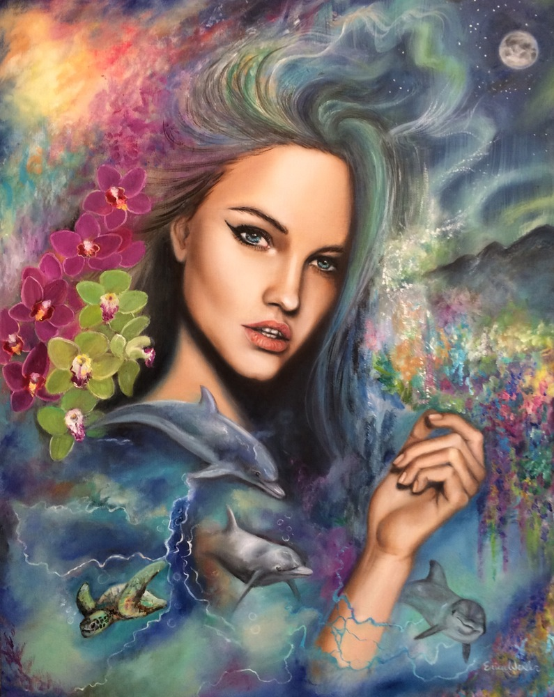 Полотна Эрики представляют собой фантастические пейзажи, где
