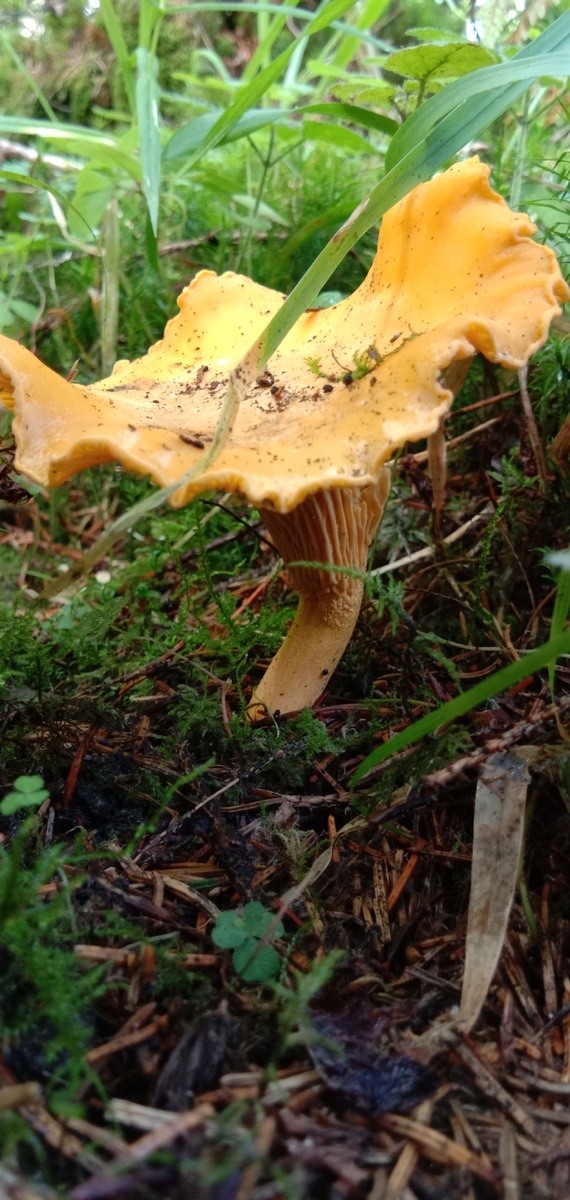 Всем привет из леса! Как говорится, сезон "тихой охоты", медленно, но верно подошёл к своему завершению.. Будем подводить итоги, да разбирать фотографии! Когда вам попадается такая Лисичка, что на кадре выше, то значит этой тропой никто не ходил как минимум неделю, т. к. грибы вредничают - перепады температуры они не любят. Но, будьте бдительны, такие большие плодовые тела, могут быть уже близки к своему умиранию.. А плодовые со следами плесени или других повреждений, лучше не собирать! Многие заблуждаются считая, что деревенские жители на реализации грибов много зарабатывают. Например, в соседней области, один кг стоит 100р, в моём кузовке поместиться, примерно 5 кг. А учитывая низкий темп роста Лисичек и то количество что растёт тут, то за неделю я бы и не получил и 300 рублей. Край у нас такой, не богатый на урожай с "лесной грядки". Есть места, где они реально смогут делать не плохие деньги в этой сфере, но там конкуренция такая, что даже будет не собрать и грибочка. Вот и та сама