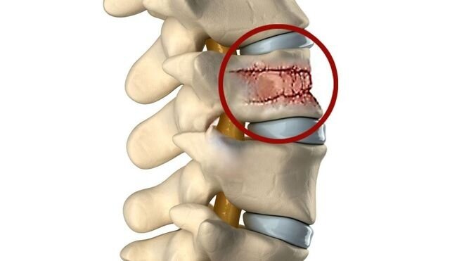 При травме один позвонок сдавливается двумя ближайшими и приобретает клиновидную форму. Сопутствующие последствия могут быть различными вплоть до радикулита, онемения и паралича конечностей.