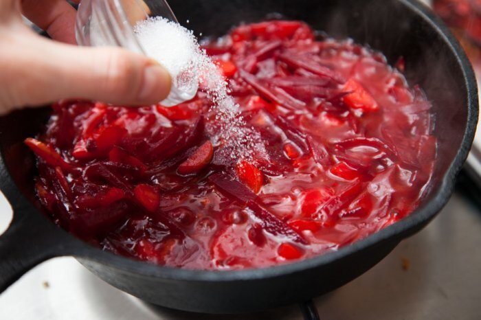 Добавьте сахар в зажарку для борща. / Фото: lavisym.ru