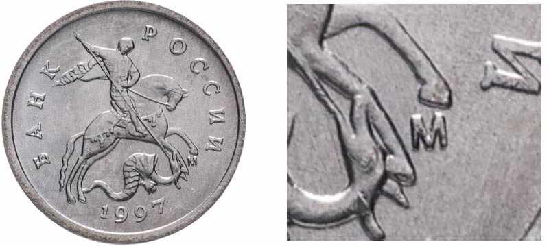У однокопеечных монет также есть разновидности. Например, у 1 копейки 1998 года СП есть три разновида, у самого редкого из них (шт.1.1.) дужка буквы "Й" тонкая и отдалена от цифры "1". Стоимость этого ценного разновида около 2000 руб.