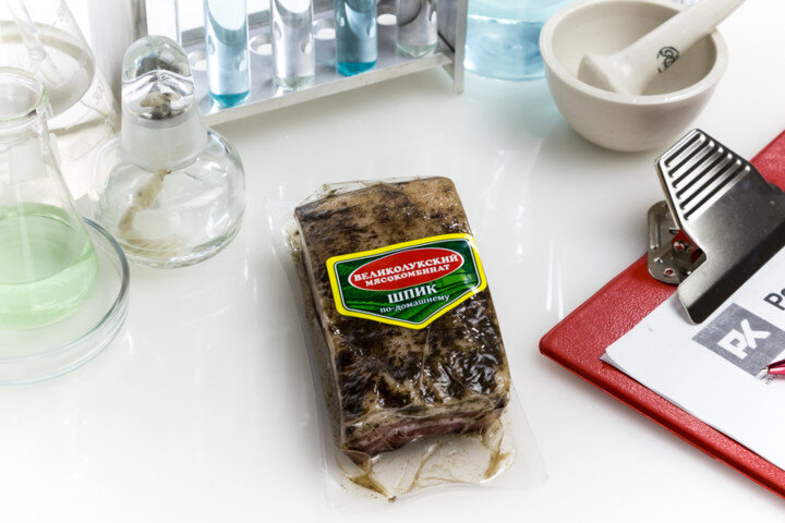 Шпик "Великолукский мясокомбинат" не соответствует требованиям безопасности по микробиологическим показателям: показатель общей обсемененности мезофильной микрофлорой (КМАФАнМ) превышен в 8 раз. Не соответствует ГОСТу, по показателю массовая доля хлористого натрия: фактическое содержание соли более, чем в 3 раза, превышает максимально допустимое.