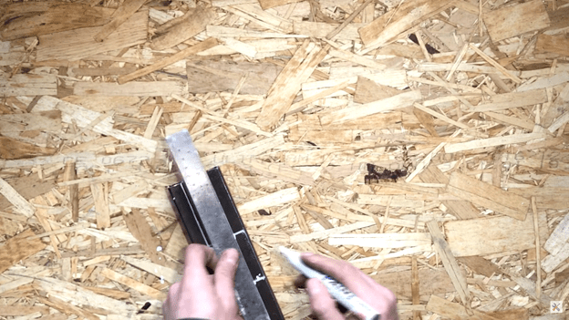 Первым делом, нам нужно нанести на обрезок профильной трубы разметку, как это показано на фото ниже.