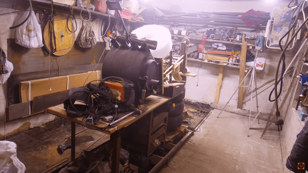 Первым делом, нам нужно перед заливкой бетонного пола очистить пол помещения. В нашем случае в гараже есть смотровая яма. Поэтому задача усложняется и нам нужно выполнить опалубку по периметру ямы. Опалубку делаем из доски низшего сорта, скрепляя её с помощью саморезов.