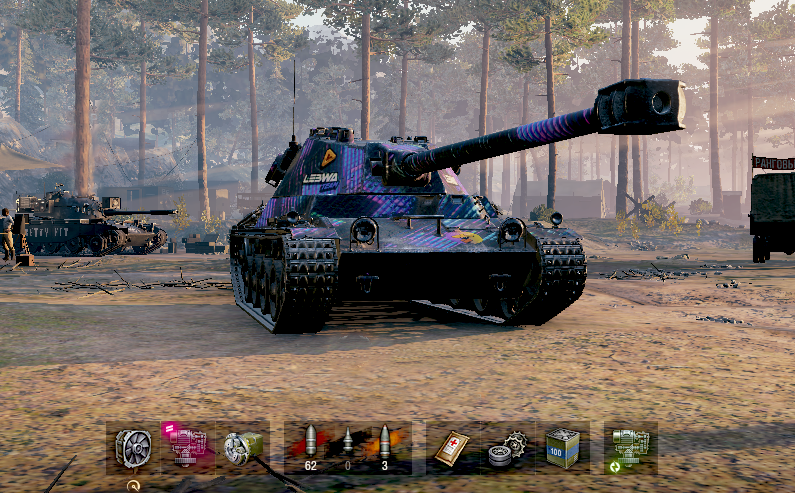 Шаг 3: Я начал играться с оборудованием. Вентиль, стаб, досыл... Этого мне показалось маловато. Пушка по-прежнему не хотела становится комфортной. Но тут вовремя подоспело Оборудование 2.0, плюс завершился сезон Боевого Пропуска. В итоге досыл и штатный стаб летят на склад, а Лансен получает в довесок к вентилю: Трофейный Стаб, в прокачанном виде и Улучшенные Механизмы Поворота (пока обычные). Стало намного веселее, но если докидывать инструкцию на стаб - вообще прекрасно. Но еще не предел, конечно.