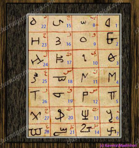 И честно говоря у меня нет повода не верить своему маятнику в данном вопросе, ибо некоторые знаки прямо на это намекают, а именно на то что данный "алфавит" создан отнюдь не в древнем израиле, а на минуточку с помощью фотошопа, путем надергивания случайных значков и просто закорюк из разных мест. Тем более непонятно вот что - пергамент на фоне которого рисовалось - явно имеет какое то иное происхождение, вот только какое?? Для меня загадка! А поверх - мазня на уровне фотошопа, ну явная же..