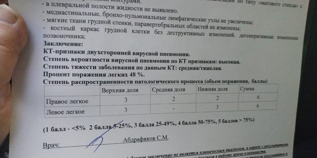 Вчера дождавшись врача, наконец, врач осмотрела и рекомендовала пройти КТ. Получив направление поехали делать КТ, кое как сбив температуру. В платные не только не принимают, но запись аж до конца следующей недели. Приехав в больницу в которую направили, меня записали сотой в списке, дожидаться не стала и сегодня через знакомых сделали в срочном порядке КТ лёгких и вот , что показало.