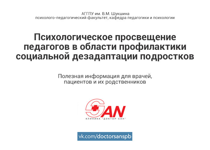 ПСИХОЛОГИЧЕСКОЕ ПРОСВЕЩЕНИЕ ПЕДАГОГОВ В ОБЛАСТИ ПРОФИЛАКТИКИ СОЦИАЛЬНОЙ ДЕЗАДАПТАЦИИ ПОДРОСТКОВ