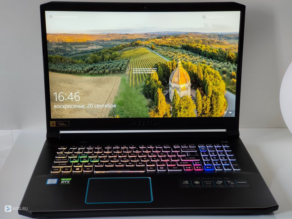 Игровые устройства одними из первых начали получать матрицы с повышенной частотой обновления, например, в современных ноутбуках и мониторах планка совсем недавно была поднята на уровень 360 Гц. Скорость этой эволюции пока что не очень укладывается в голове, но нам остаётся лишь наблюдать за этой гонкой «железа». В тестовой версии Predator Helios 3oo установлен IPS-экран с более скромной, но вполне адекватной частотой обновления 144 Гц и разрешением Full HD при диагонали в 17.3 дюйма.