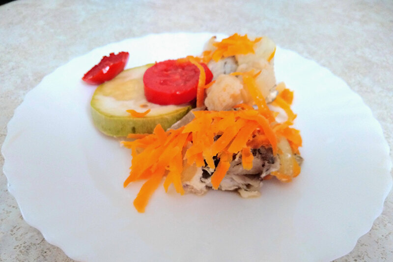 Все овощи необходимо тщательно промыть. Далее цветная капуста разбирается на соцветия, а помидоры и кабачки нарезаются небольшими кружочками. Морковь необходимо натереть на терке, а лук порезать полукольцами. Теперь овощи хорошо подготовлены для данного рецепта.