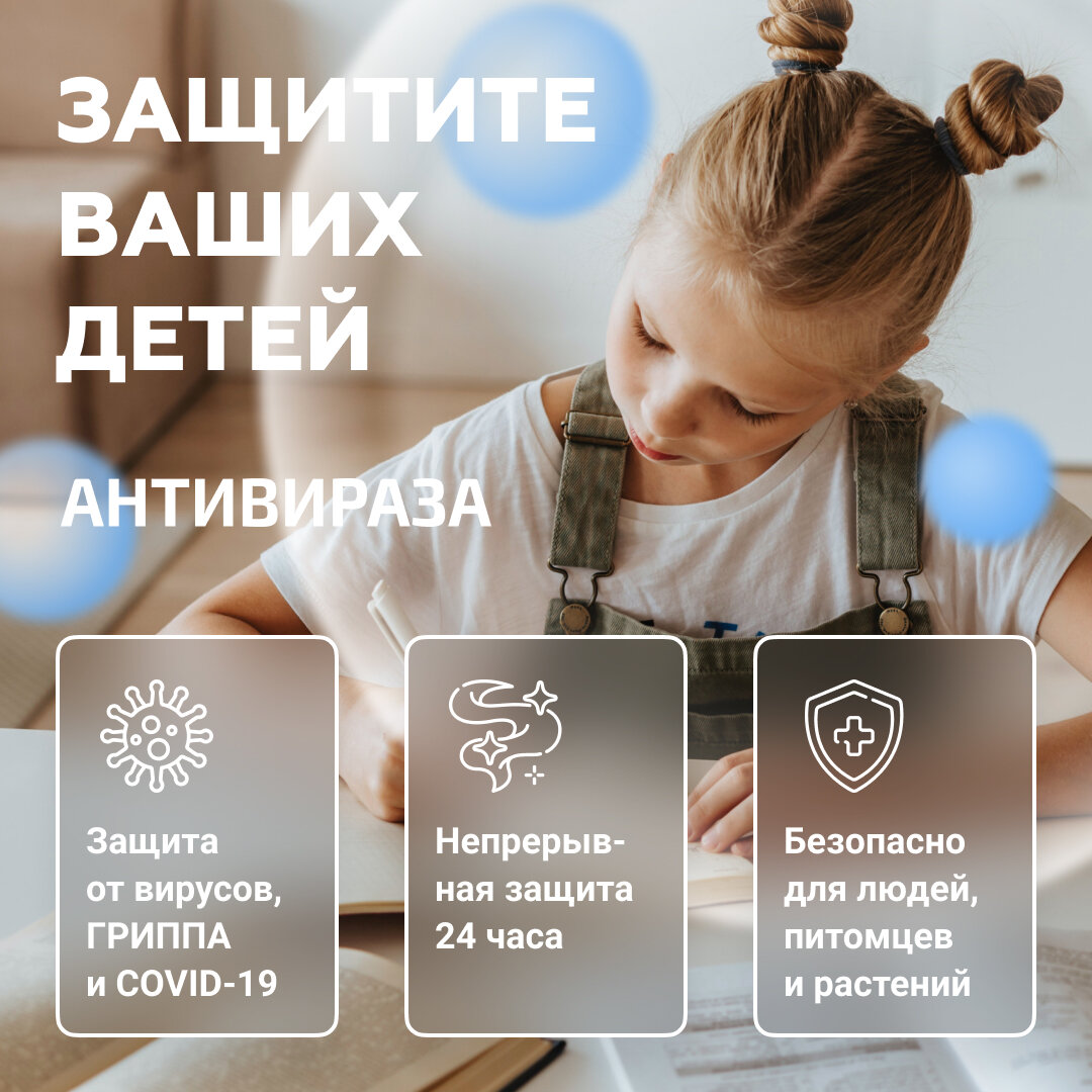 Установленный увлажнитель воздуха с «Антивиразой» в школе, дома или в офисе обеспечит противовирусную безопасность 24/7 и не позволит подцепить заразу, принесенную с улицы.